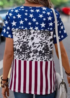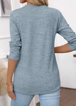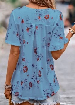 Blue Patchwork Floral Print Long Sleeve Round Neck Sweatshirt