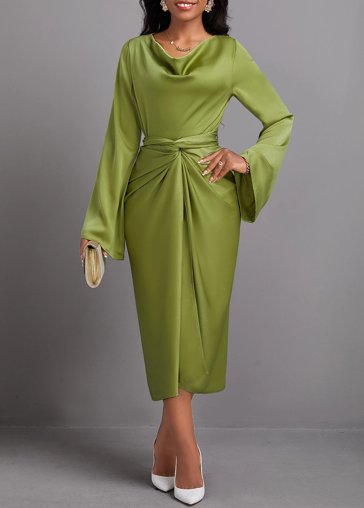 - Neckline :Draped Neck