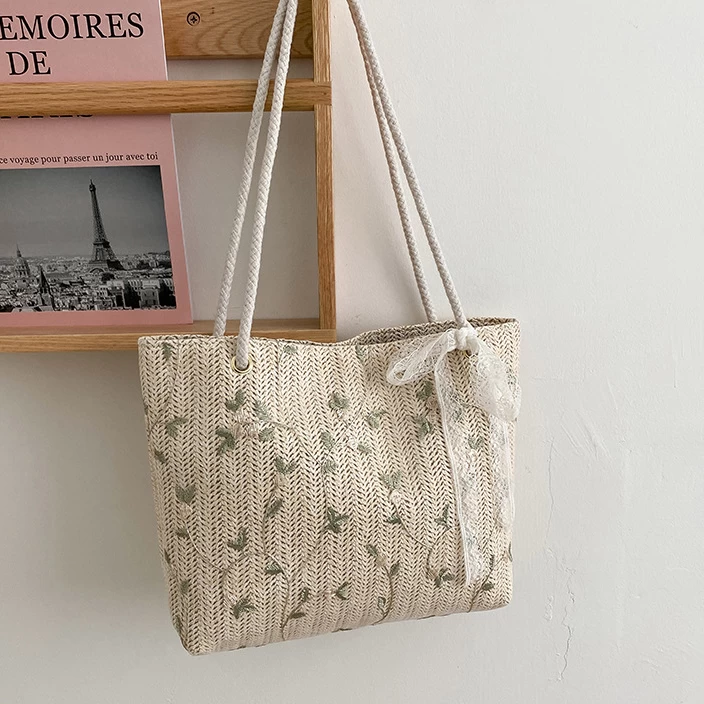 Beige Floral Print Magnetic Bowknot Storage Bag