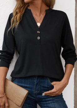 Be the first to review “Black Button Long Sleeve Split Neck T Shirt” Cancel reply