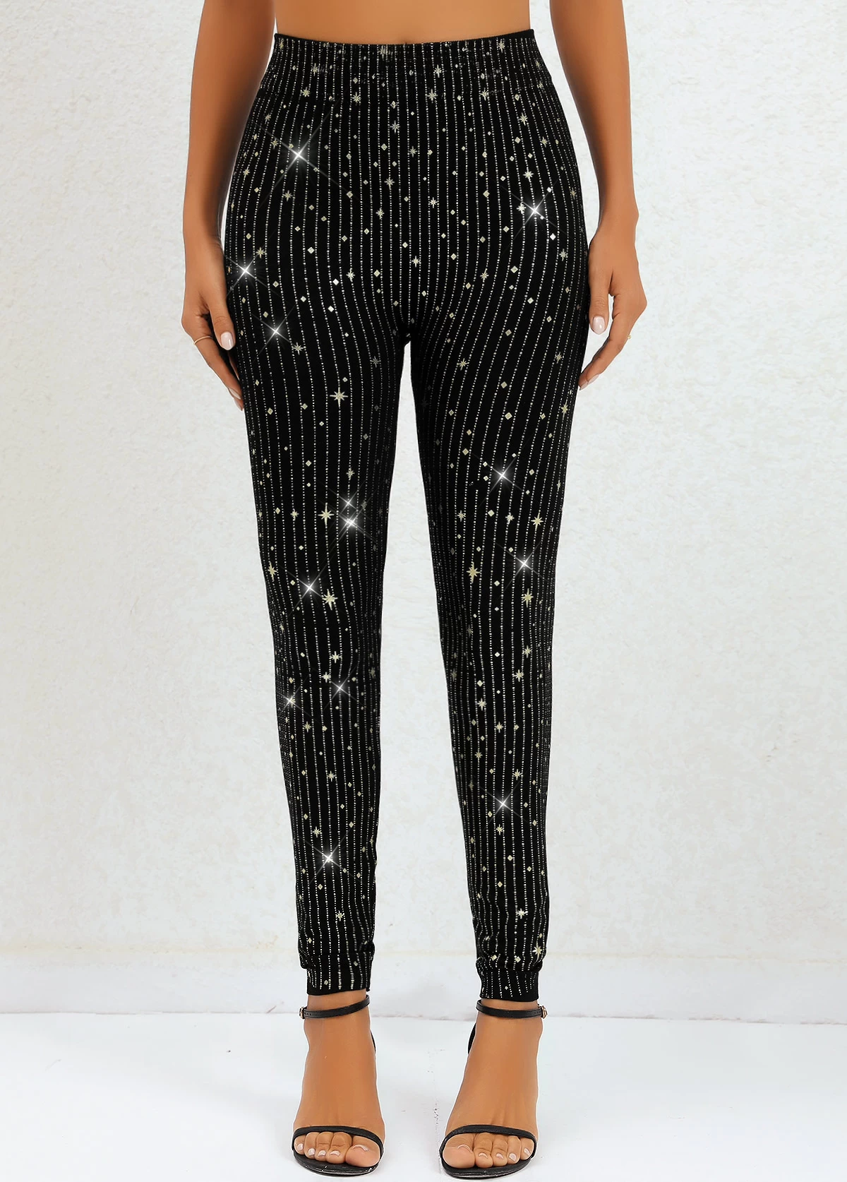 Black High Waisted Ankle Length Galaxy Leggings