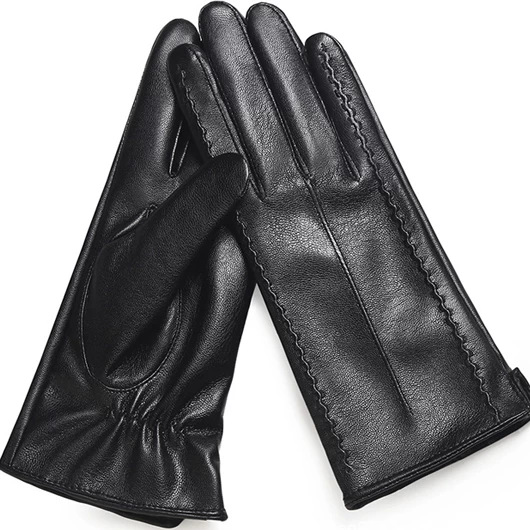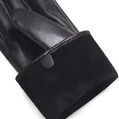 Black Leather Wrist Warming Full Finger Gloves