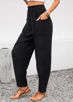 Black Pocket Elastic Waist High Waisted Pants