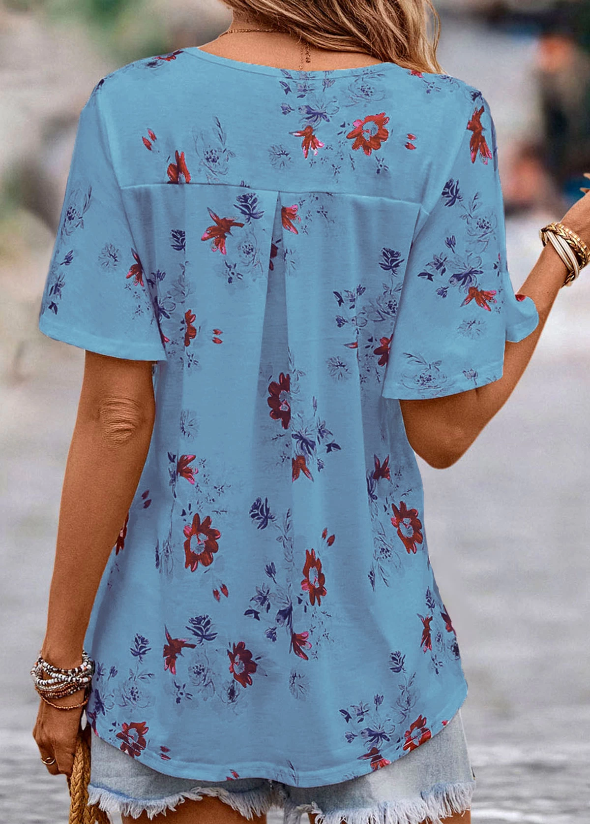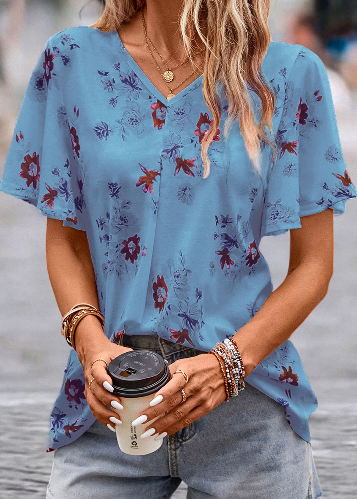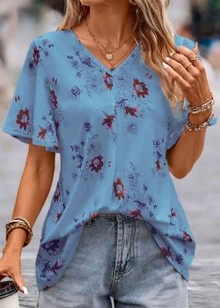 Be the first to review “Blue Floral Print Short Sleeve V Neck Blouse” Cancel reply
