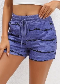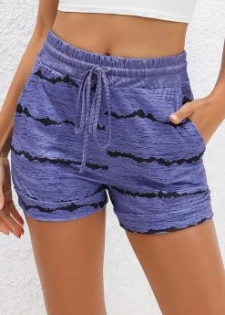 Blue Pocket Striped Regular Drawastring High Waisted Shorts