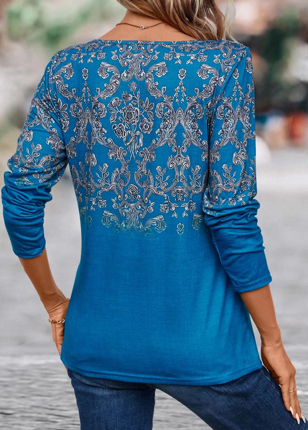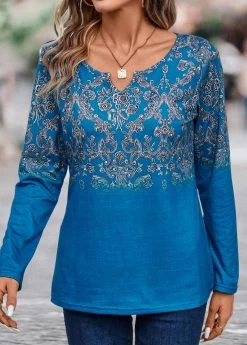 Be the first to review “Blue Split Tribal Print Long Sleeve T Shirt” Cancel reply