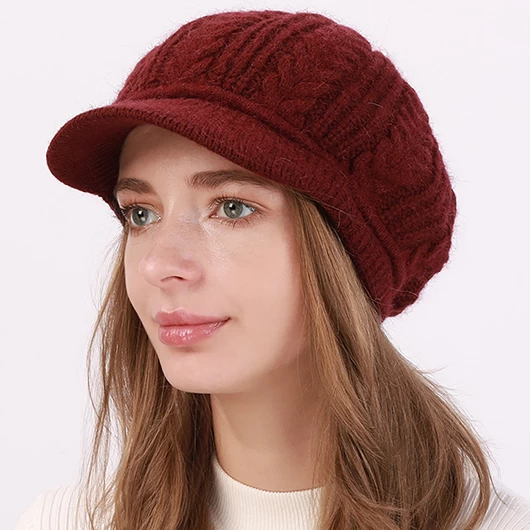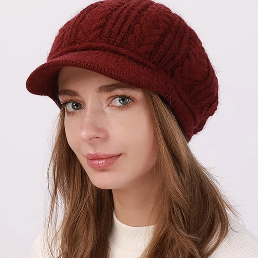 Classic Wine Red Ribbed Beret Hat