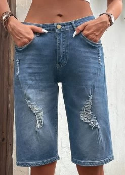 Be the first to review “Dark Blue Hole Button Fly Denim Shorts” Cancel reply