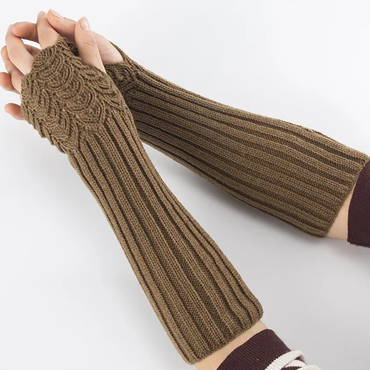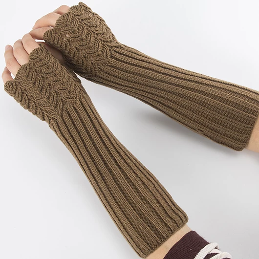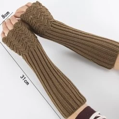Dark Camel Below Elbow Warming Fingerless Gloves