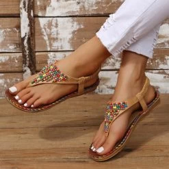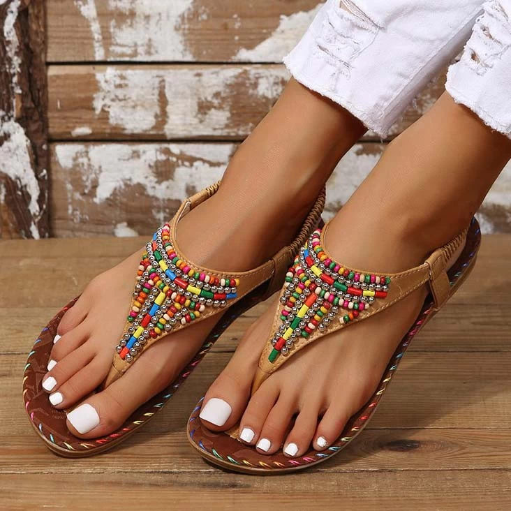 Dark Camel Tribal Print Toe Post Falt Slippers