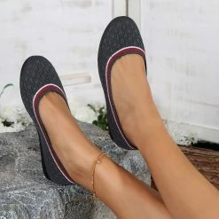 Dark Grey Contrast Binding Mesh Point Toe Falt