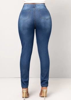 Denim Blue Double Side Pockets Butterfly Print Jeans