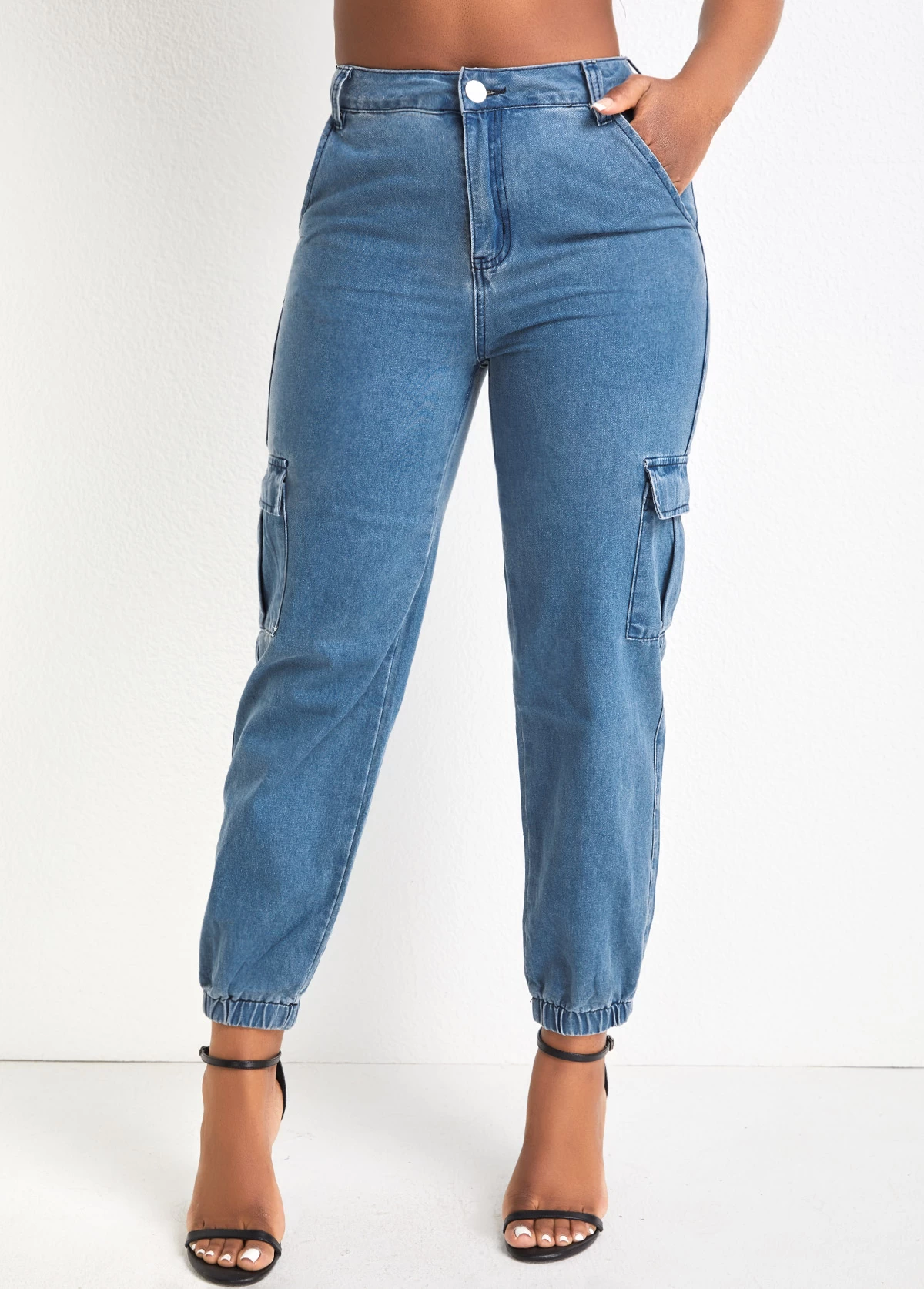 Denim Blue Pocket Jogger Zipper Fly Pants