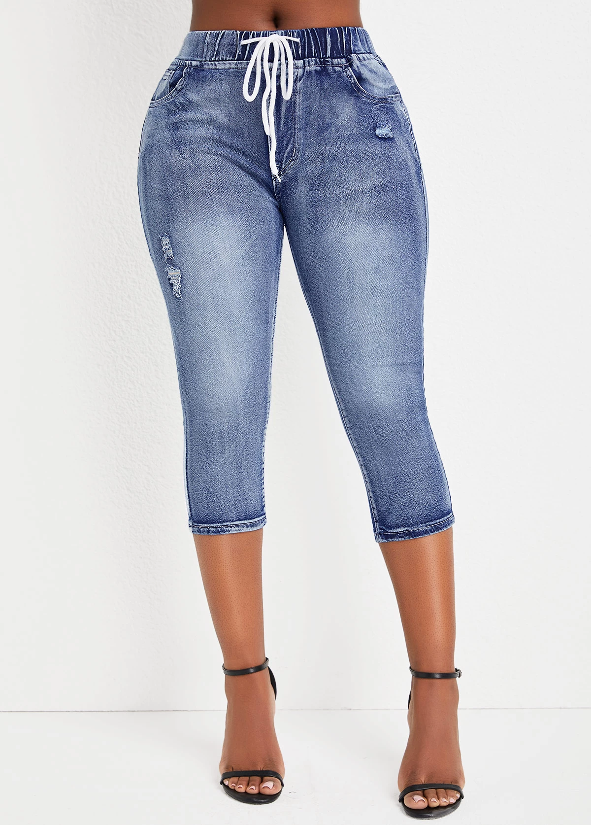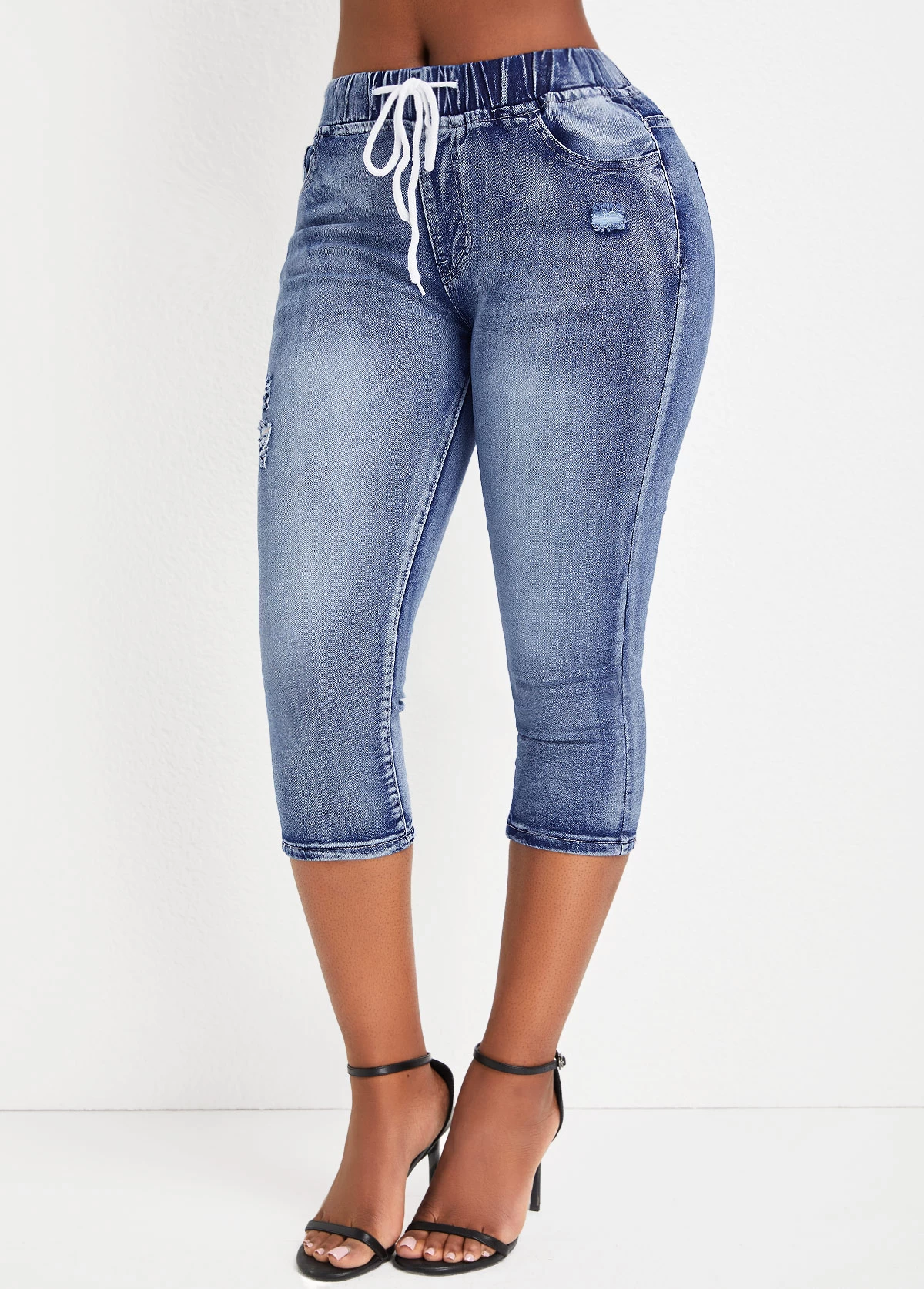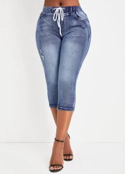 Be the first to review “Denim Blue Pocket Skinny Drawastring Mid Waisted Jeans” Cancel reply