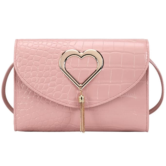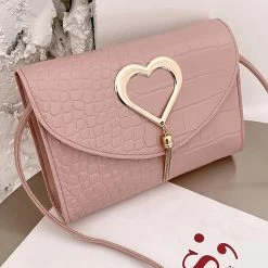 Dusty Pink Magnetic Tassel Heart Detail Shoulder Bag