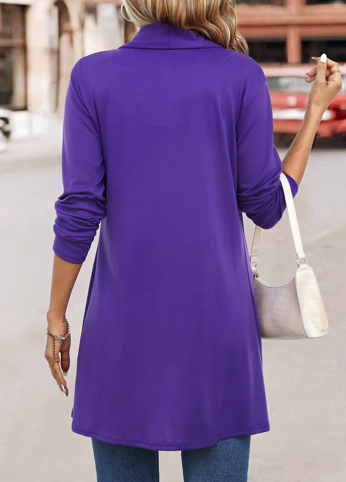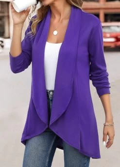 Flowy Purple Asymmetry Long Sleeve Cardigan