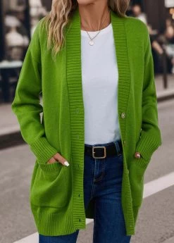 Be the first to review “Grass Green Pocket Long Sleeve V Neck Cardigan” Cancel reply