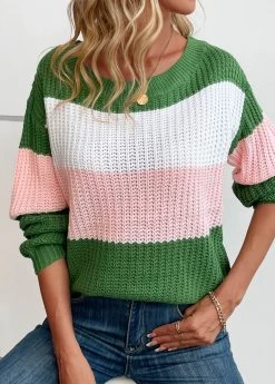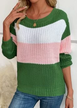 Be the first to review “Green Patchwork Striped Long Sleeve Round Neck Sweater” Cancel reply
