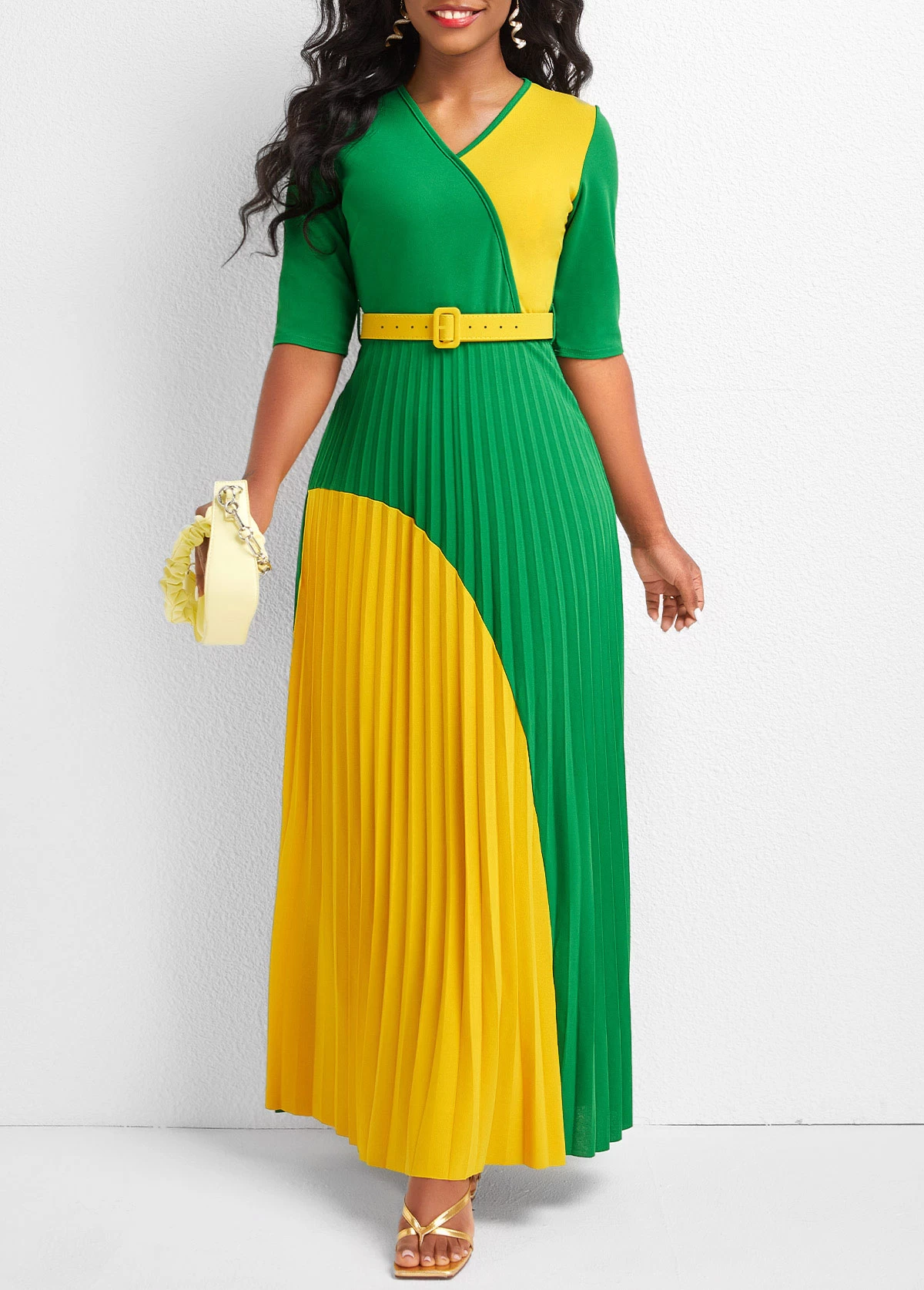 Be the first to review “Green Pleated Belted Half Sleeve Maxi Dress” Cancel reply