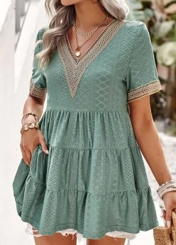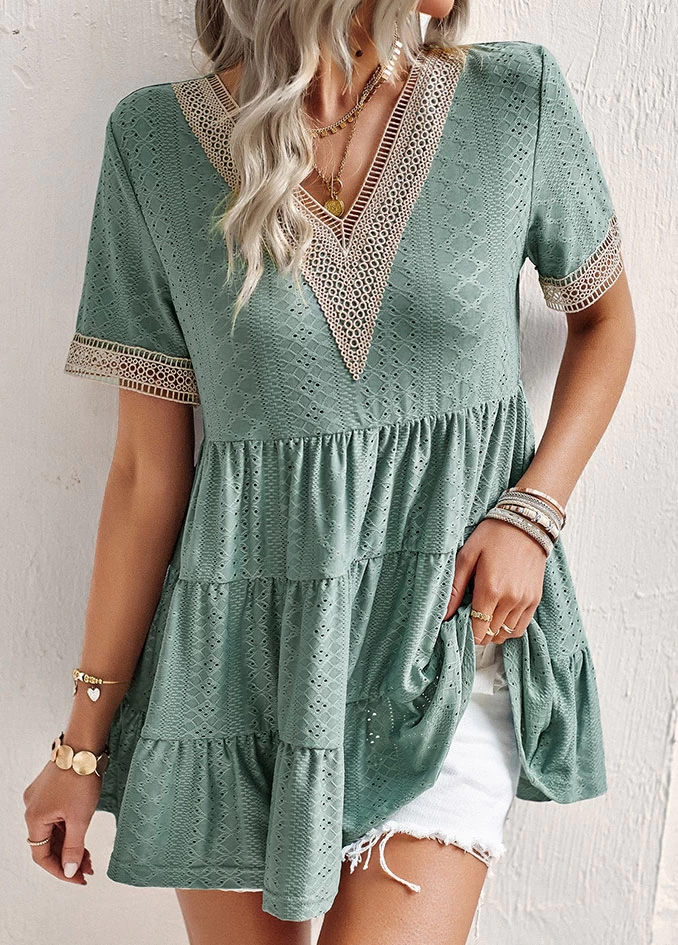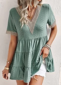 Be the first to review “Green Smocked Short Sleeve V Neck T Shirt” Cancel reply