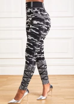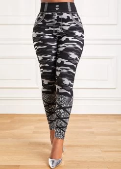 Grey Camouflage Print High Waisted Ankle Length Leggings
