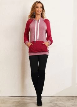 Kangaroo Pocket Lace Stitching Drawstring Hoodie