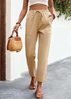 Light Camel Pocket Regular Elastic Waist Pants