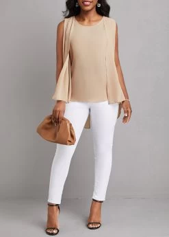 Light Coffee Fake 2in1 Zipper Tank Top