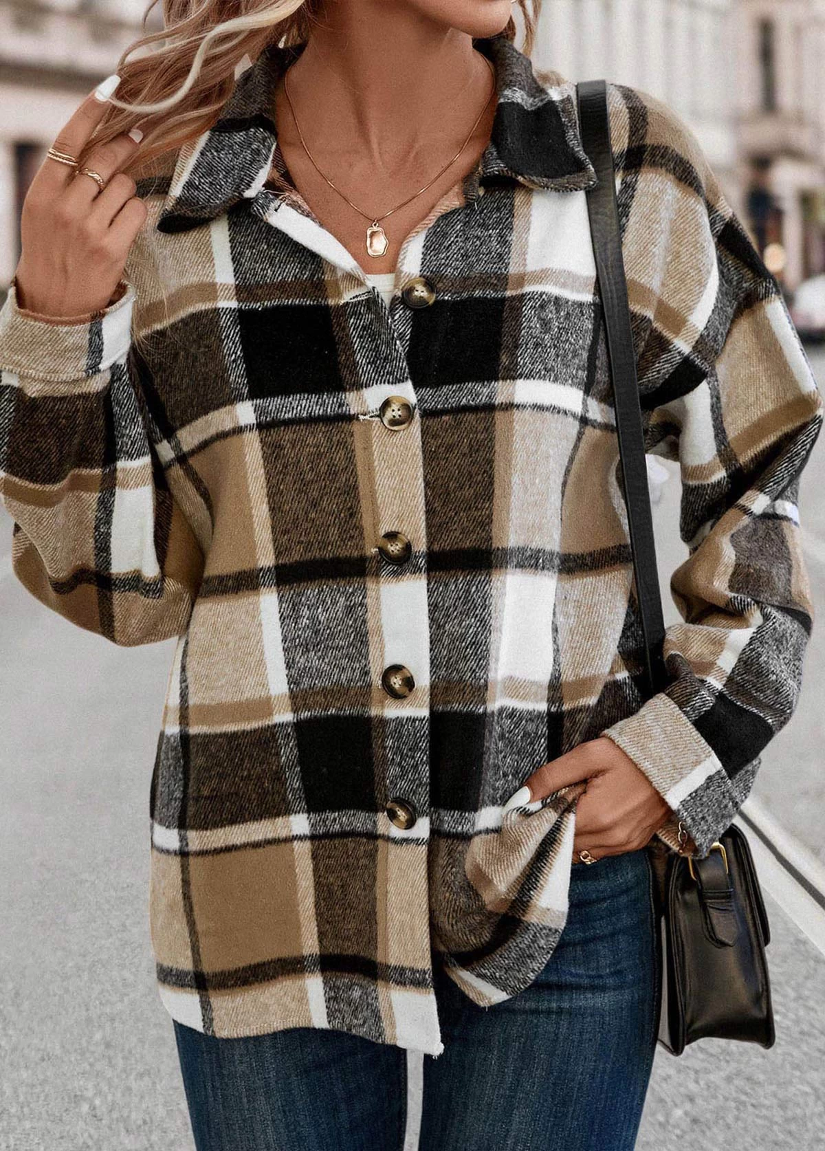 Be the first to review “Light Coffee Patchwork Plaid Long Sleeve Blouse” Cancel reply
