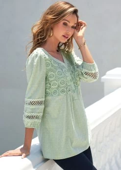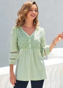 Be the first to review “Light Green V Neck Lace Stitching T Shirt” Cancel reply