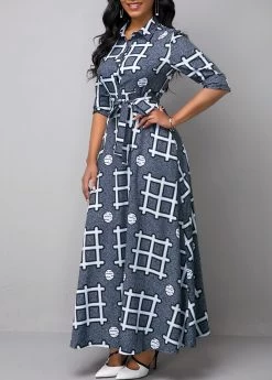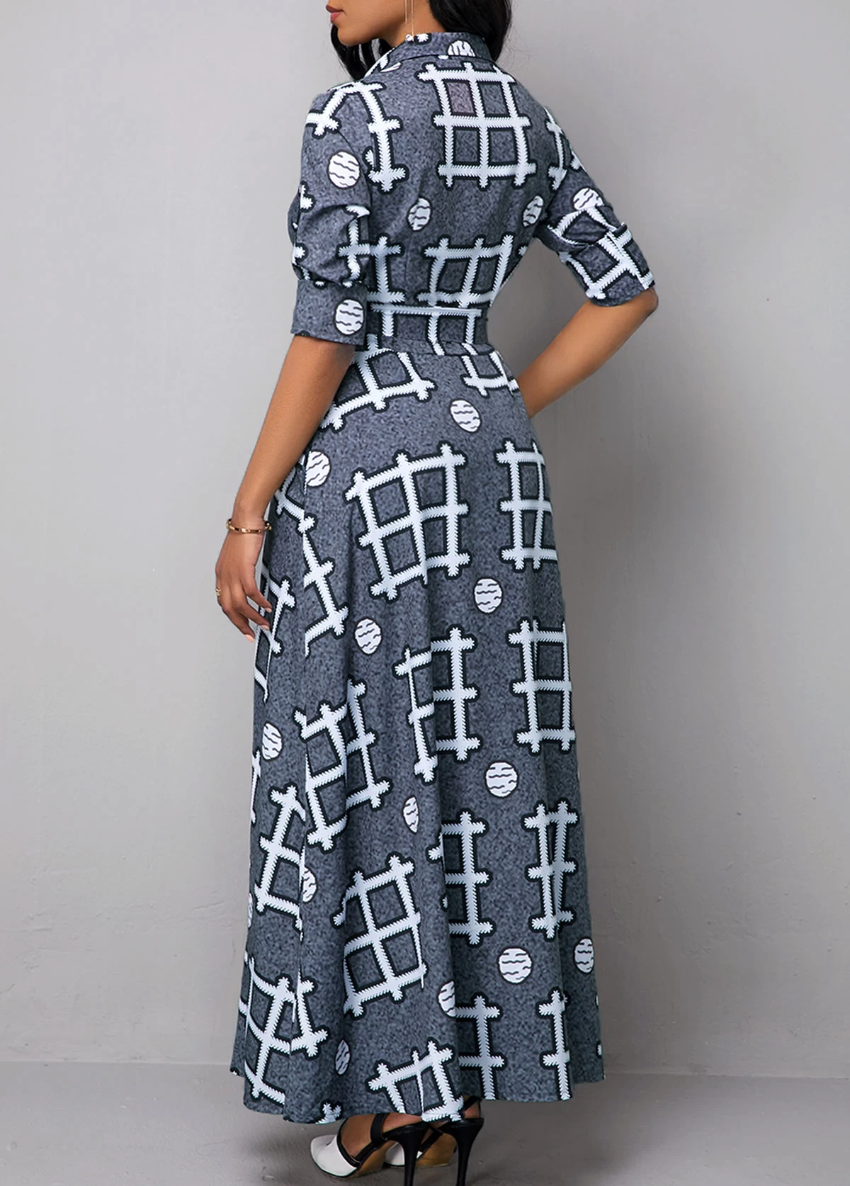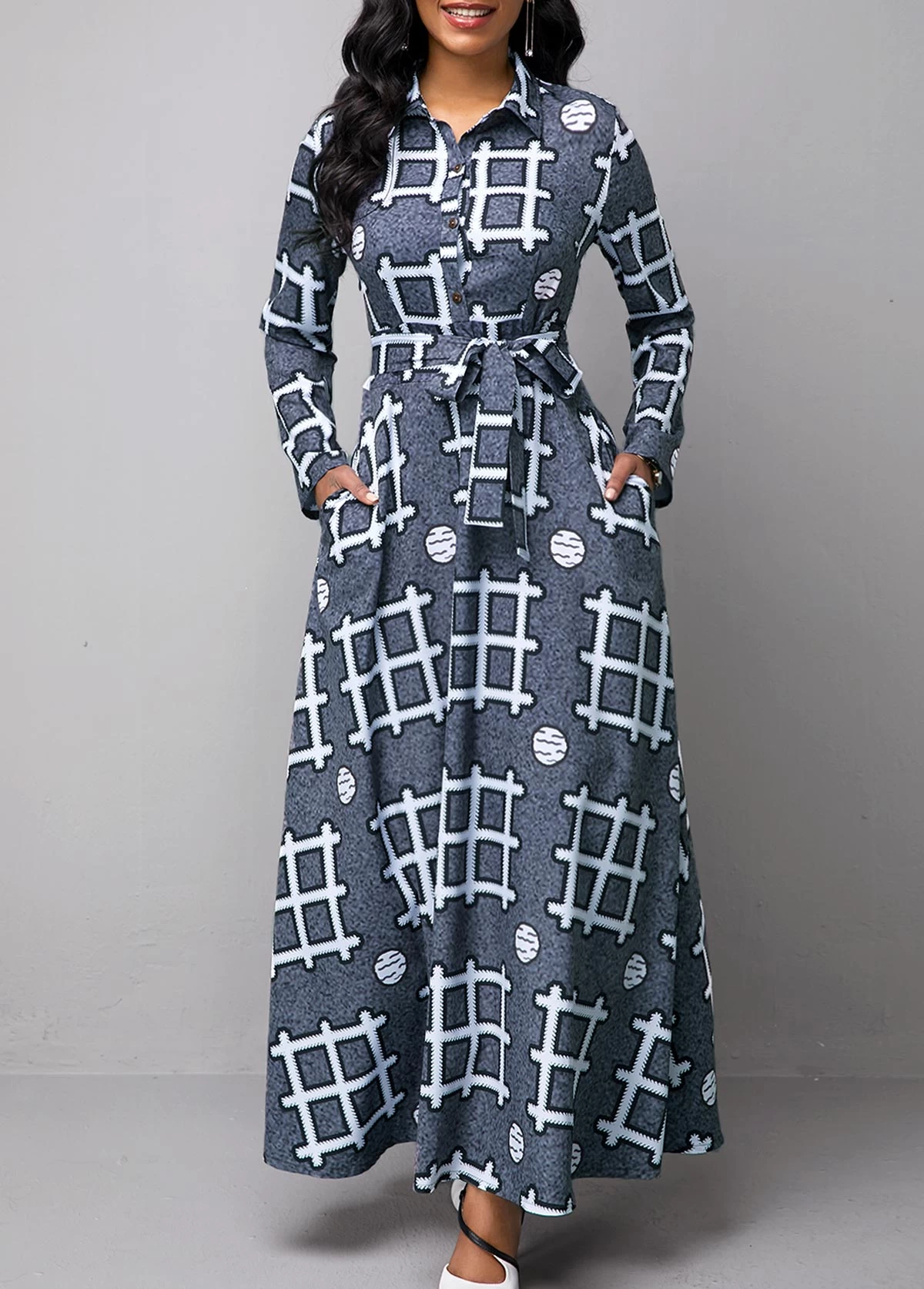Be the first to review “Long Sleeve Turndown Collar Geometric Print Dress” Cancel reply