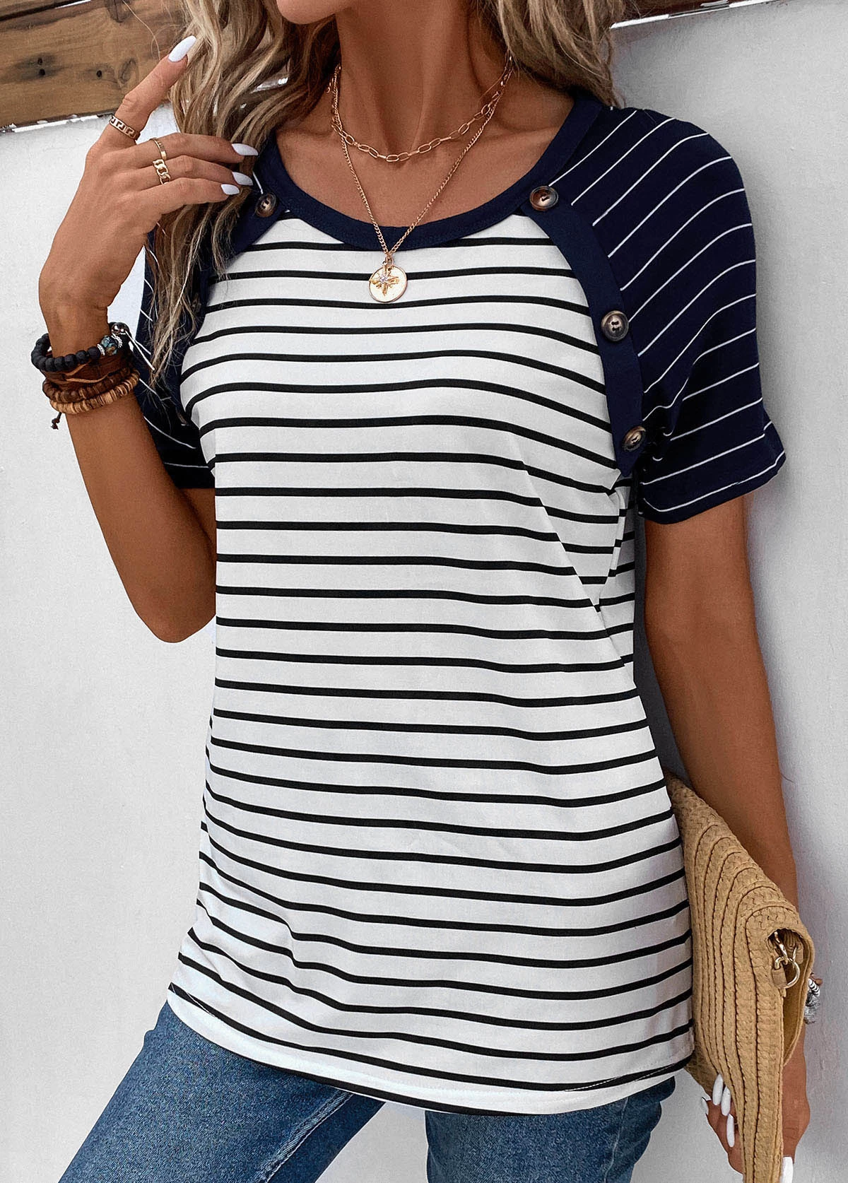 Be the first to review “Navy Patchwork Striped Short Sleeve T Shirt” Cancel reply