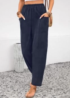 Navy Pocket Elastic Waist High Waisted Pants