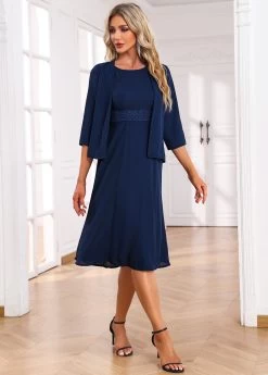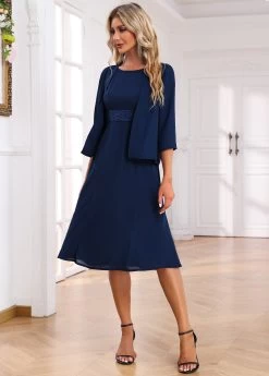 Navy Two Piece Dress And Cardigan