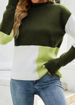 Be the first to review “Olive Green Patchwork Geometric Print Long Sleeve Sweater” Cancel reply