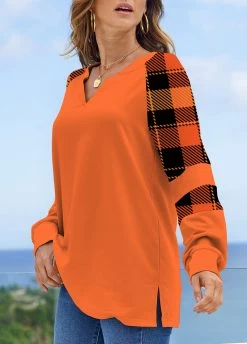 Orange Tartan Print Long Sleeve Halloween Sweatshirt