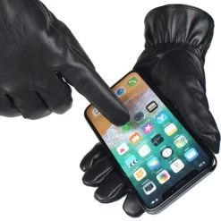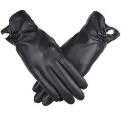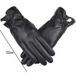 Pearl Detail Black Wrist Warming Full Finger Gloves