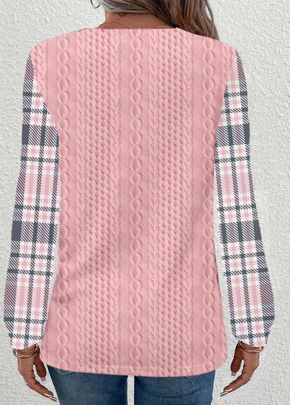 Be the first to review “Pink Patchwork Plaid Long Sleeve Round Neck Sweatshirt” Cancel reply
