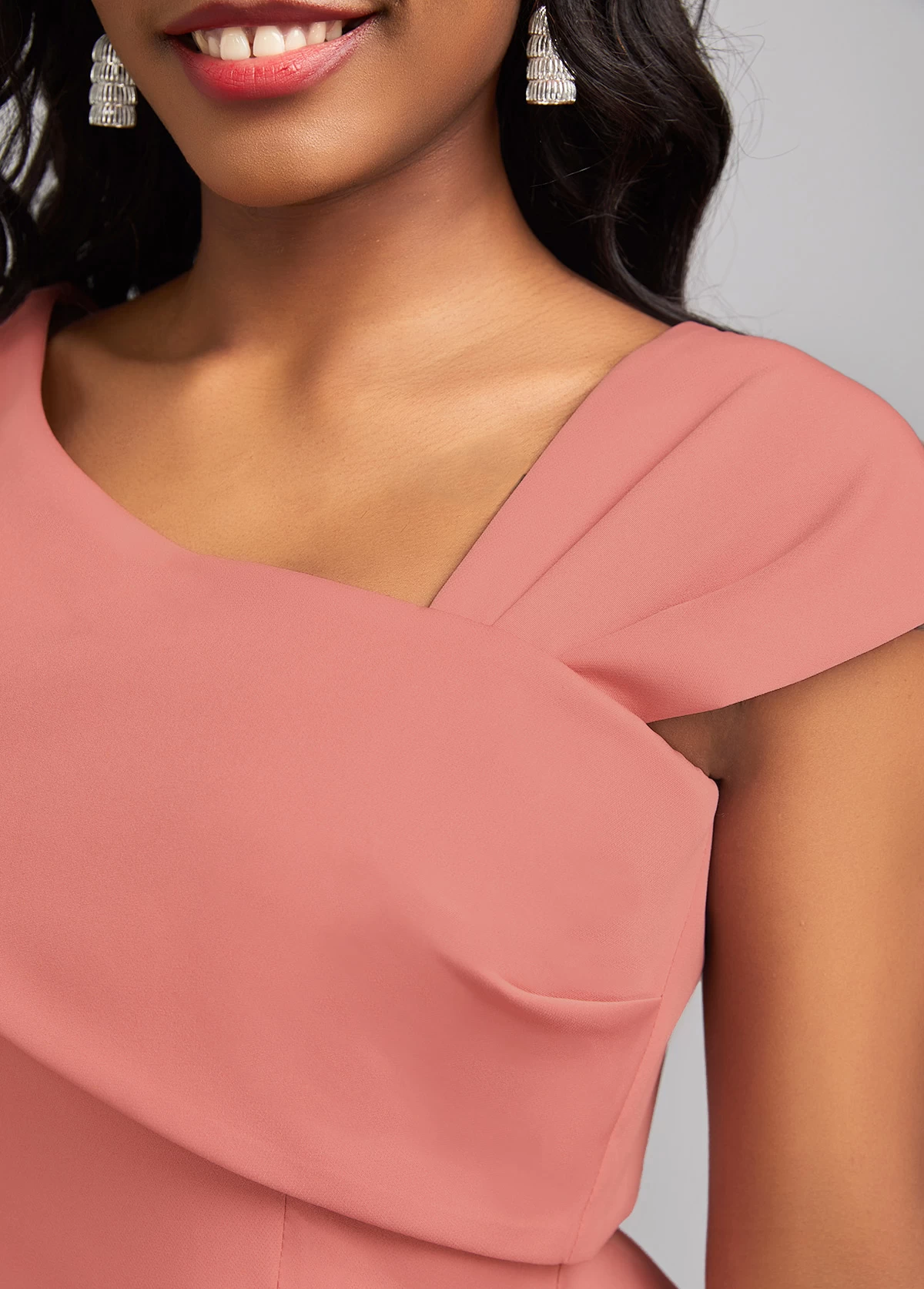 Pink Short Sleeve Asymmetrical Neck Blouse