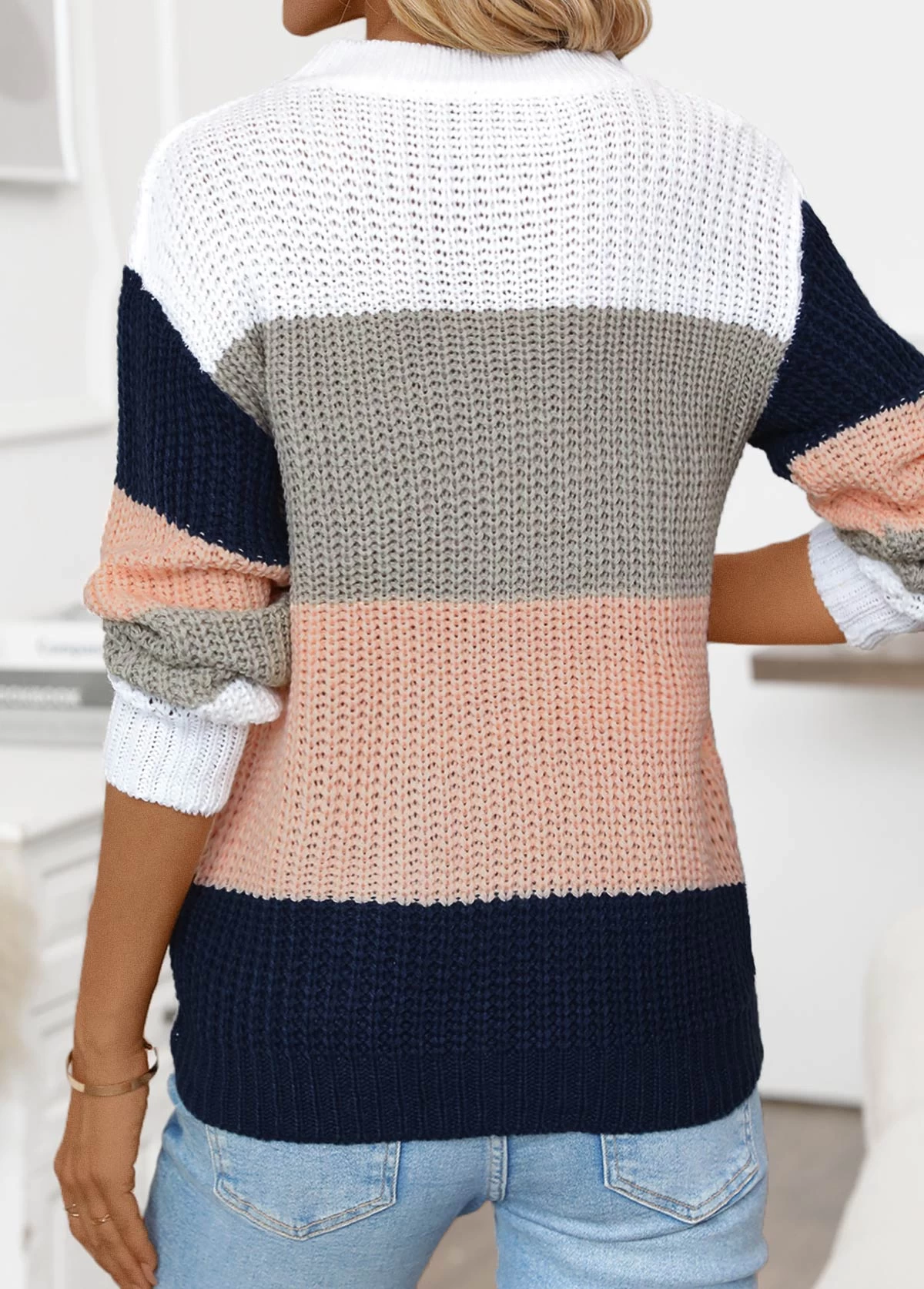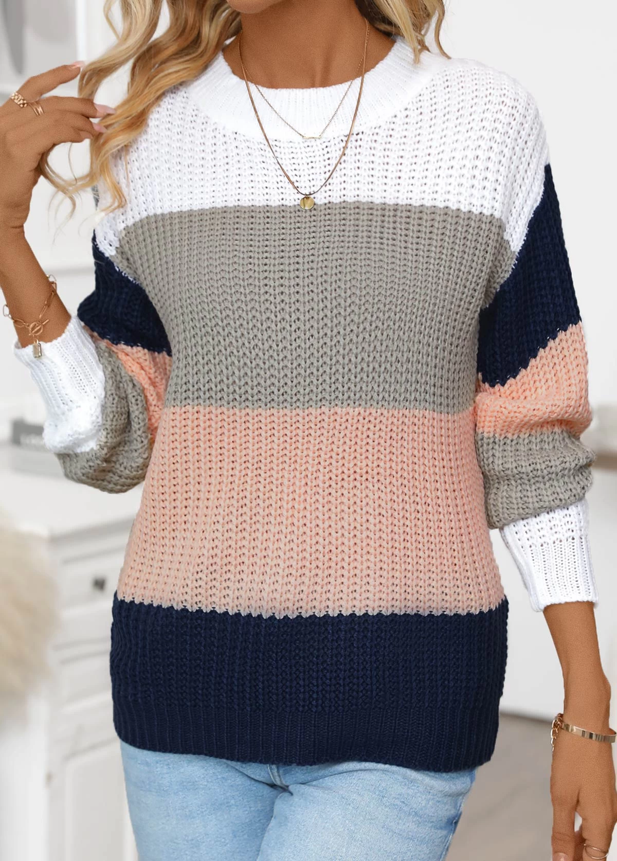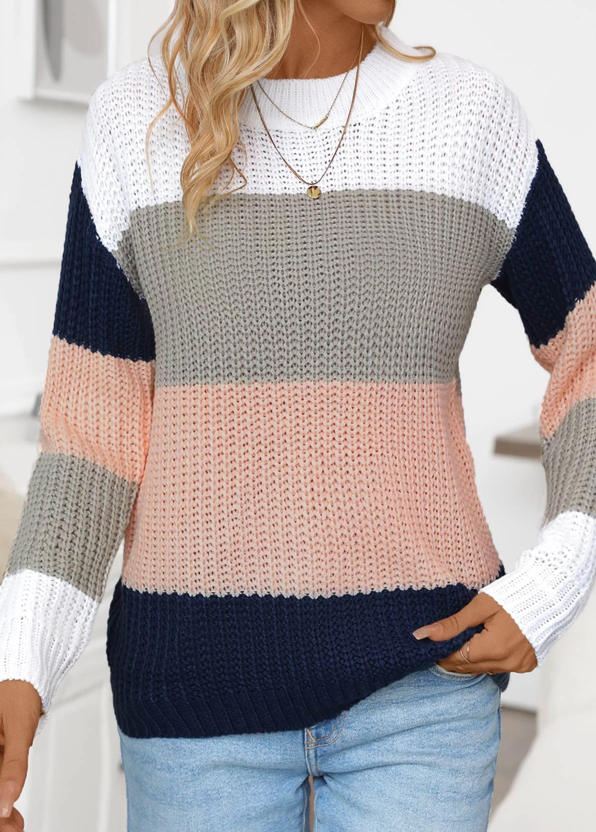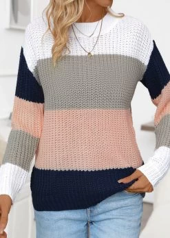 Be the first to review “Pink Weave Striped Long Sleeve Round Neck Sweater” Cancel reply