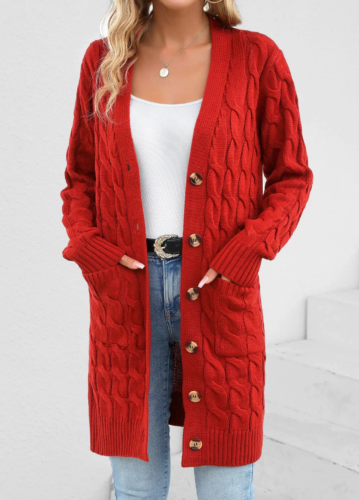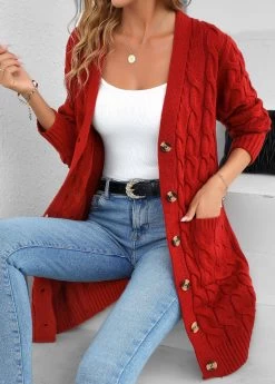 Be the first to review “Red Pocket Long Sleeve V Neck Cardigan” Cancel reply