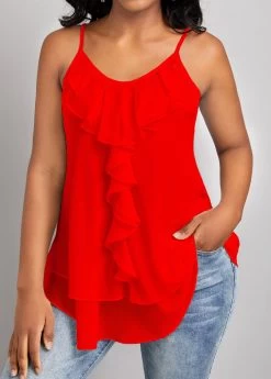 Red Ruffle Strappy Scoop Neck Camisole Top