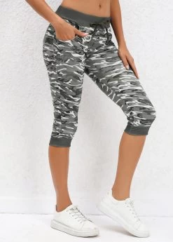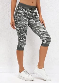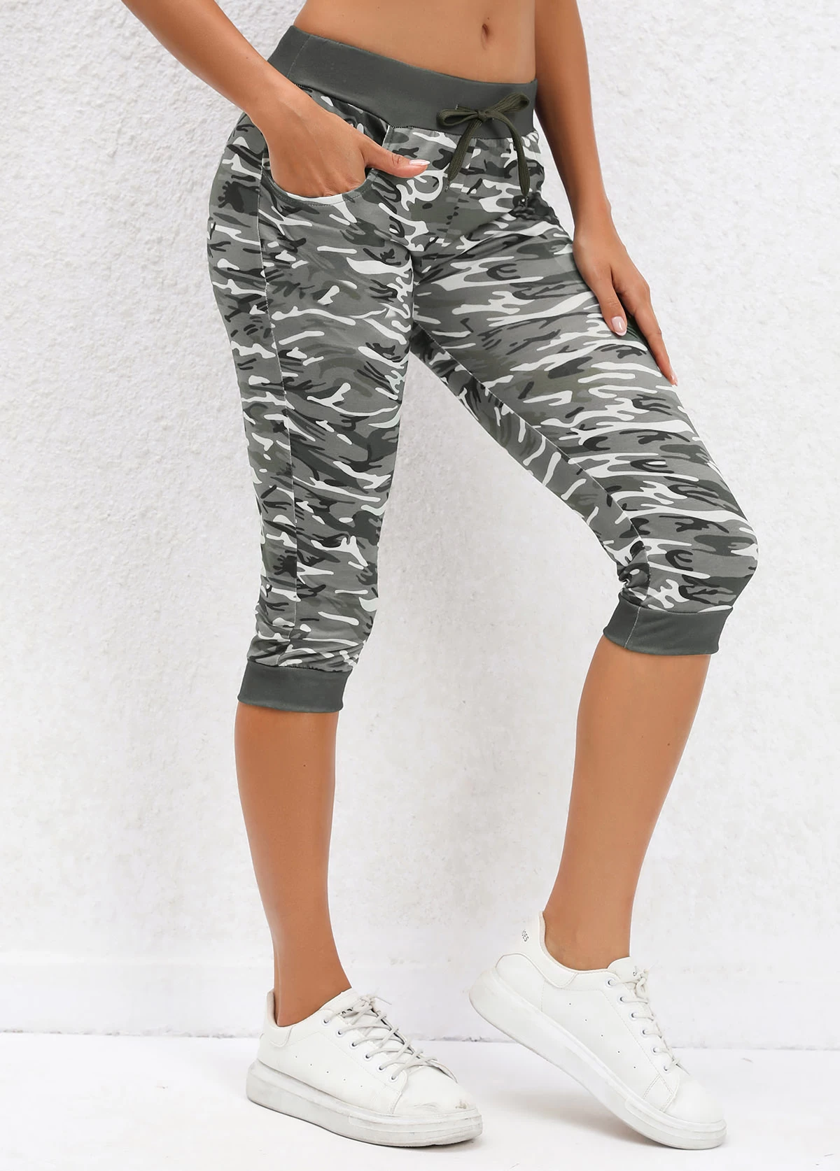 Sage Green Camouflage Print Mid Waisted Capri Leggings