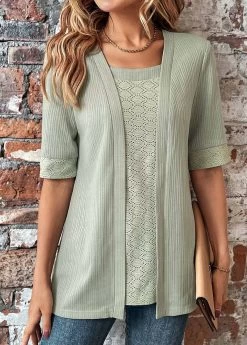 Sage Green Fake 2in1 Half Sleeve T Shirt