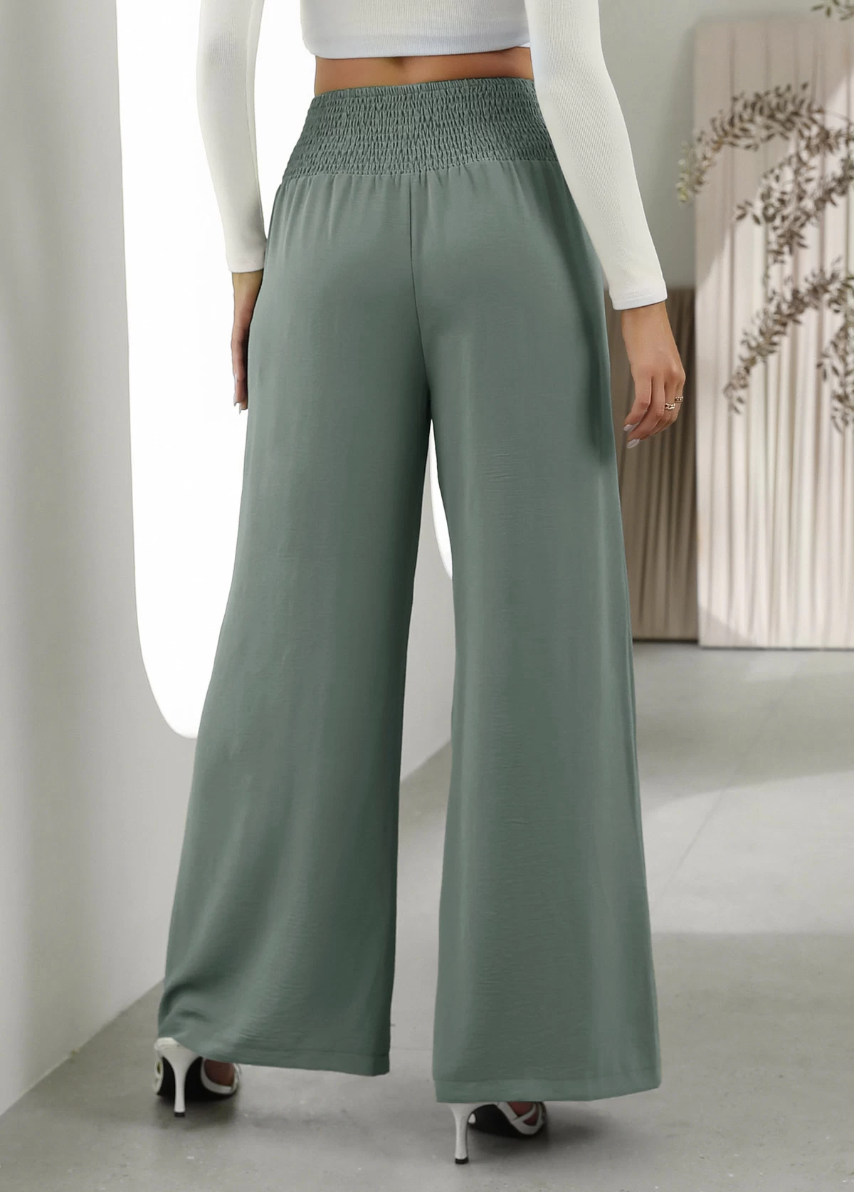 Sage Green Smocked Elastic Waist High Waisted Pants