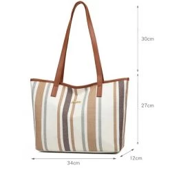 Stripe Print Brown Contrast Tote Bag