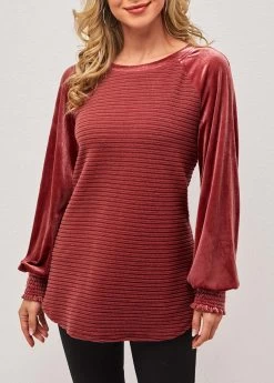 Velvet Stitching Round Neck Deep Red Valentines Sweatshirt
