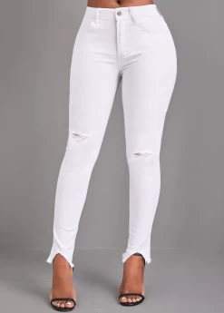 White Button Skinny High Waisted Jeans