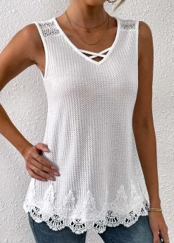 White Lace V Neck Tank Top