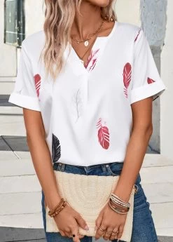 Be the first to review “White Lightweight Feathers Print Short Sleeve Blouse” Cancel reply